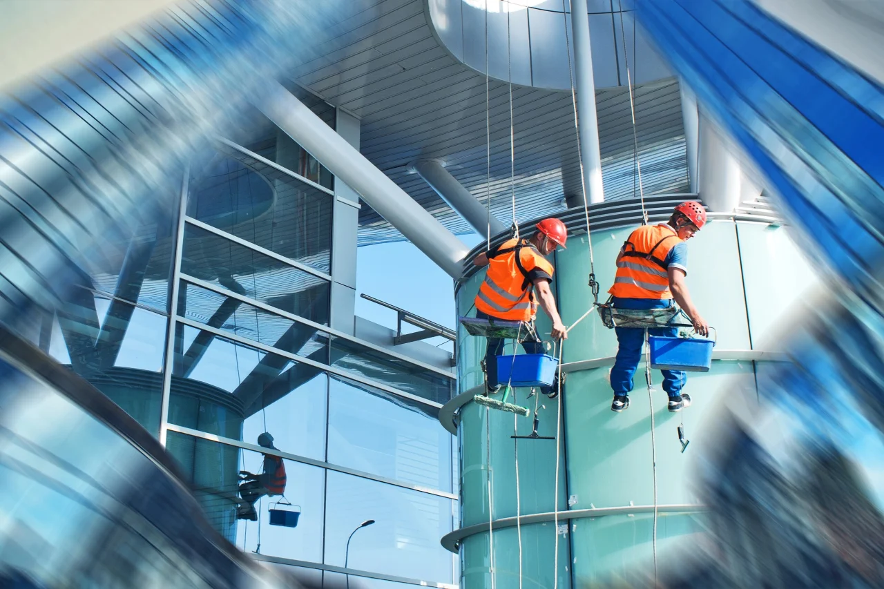 Für strahlend saubere Glasflächen in luftiger Höhe – unsere Industriekletterer reinigen Fenster, Glasfassaden und Glasdächer effizient und gründlich, selbst in schwer zugänglichen Bereichen.